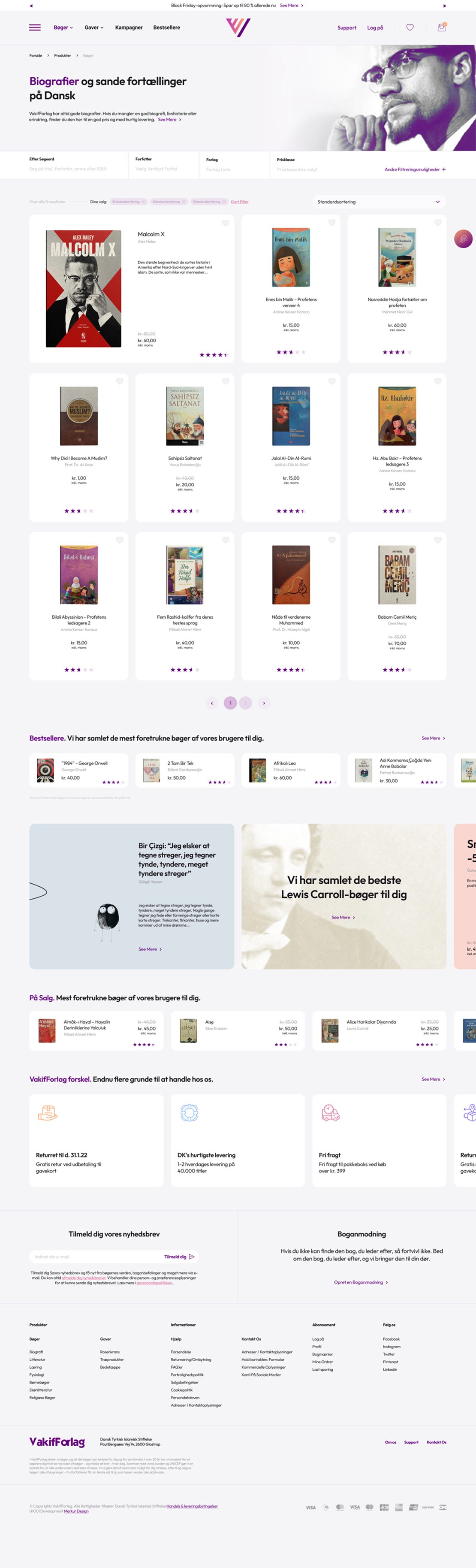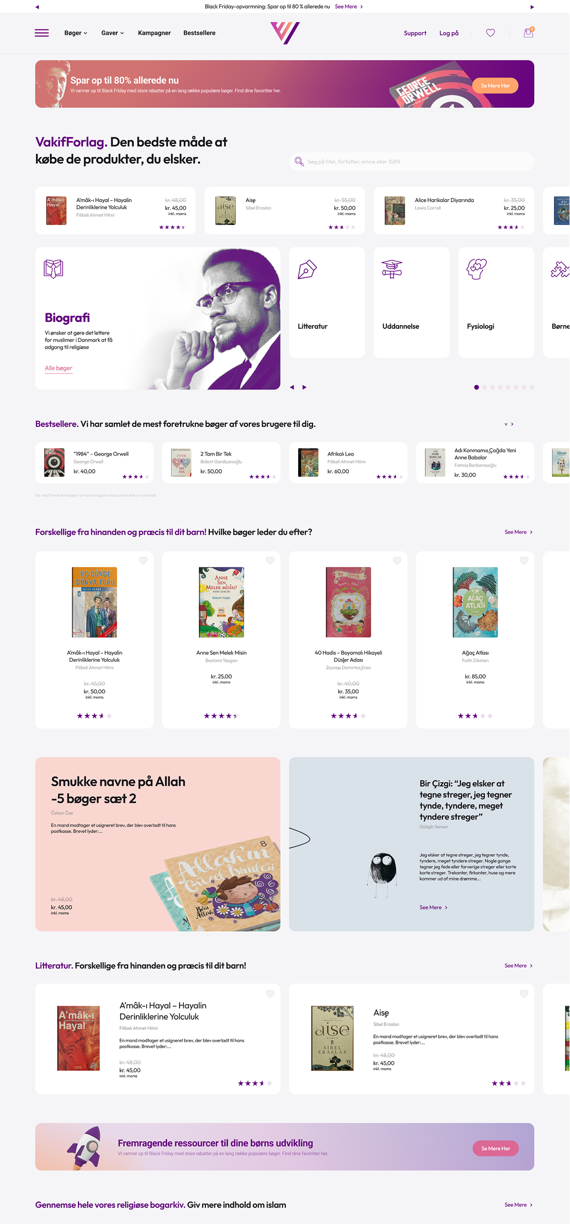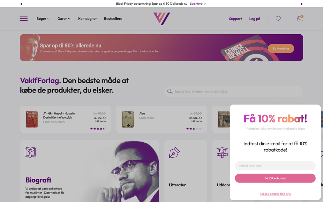VakifForlag is an e-commerce platform designed to provide a secure, fast, and user-friendly shopping experience for books and gifts in Denmark. The project focused on creating a clear information structure, strong mobile usability, and a reliable technical foundation that supports both customers and internal teams.